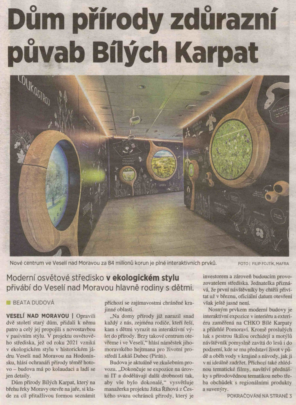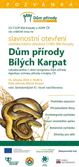 V březnu 2024 jsme otevřeli Dům přírody Bílých Karpat, kde je současně otevřeno i Turistické informační centrum na Bartolomějském náměstí ve Veselí nad Moravou, kde se nachází interaktivní expozice o přírodě Bílých Karpat a okolí.