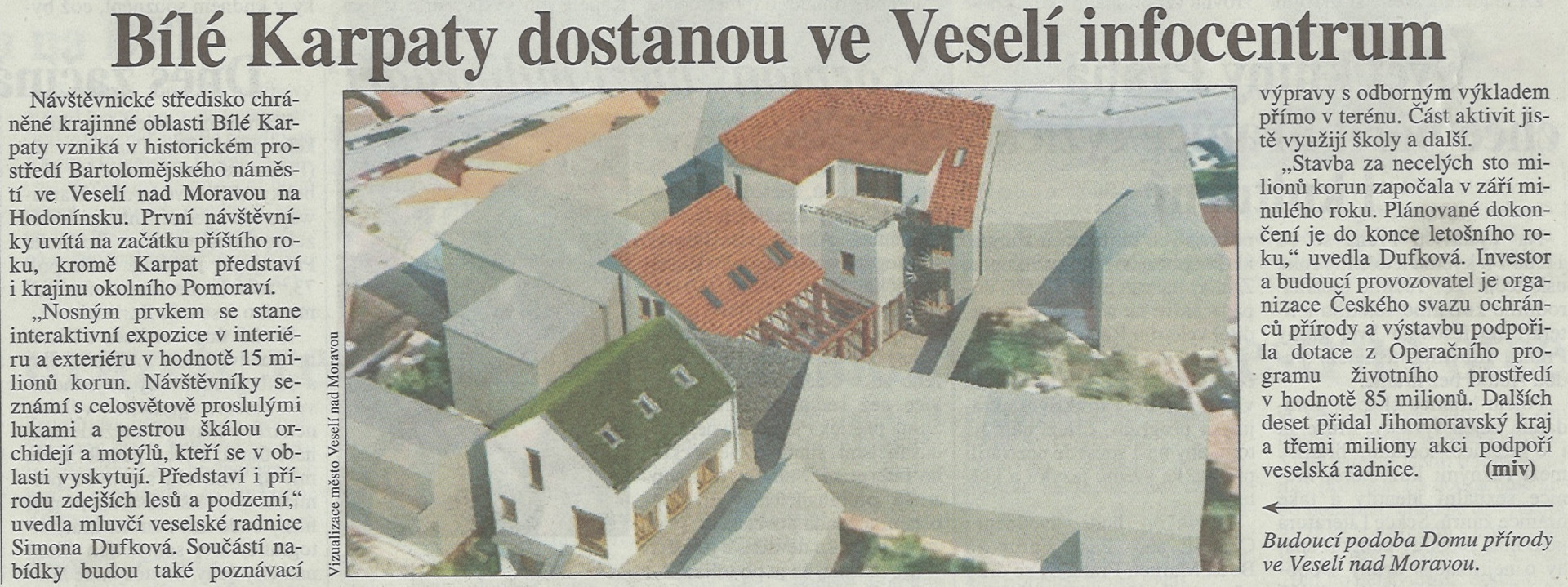 Veselské listy - Ve Veselí vzniká Dům přírody Bílých Karpat