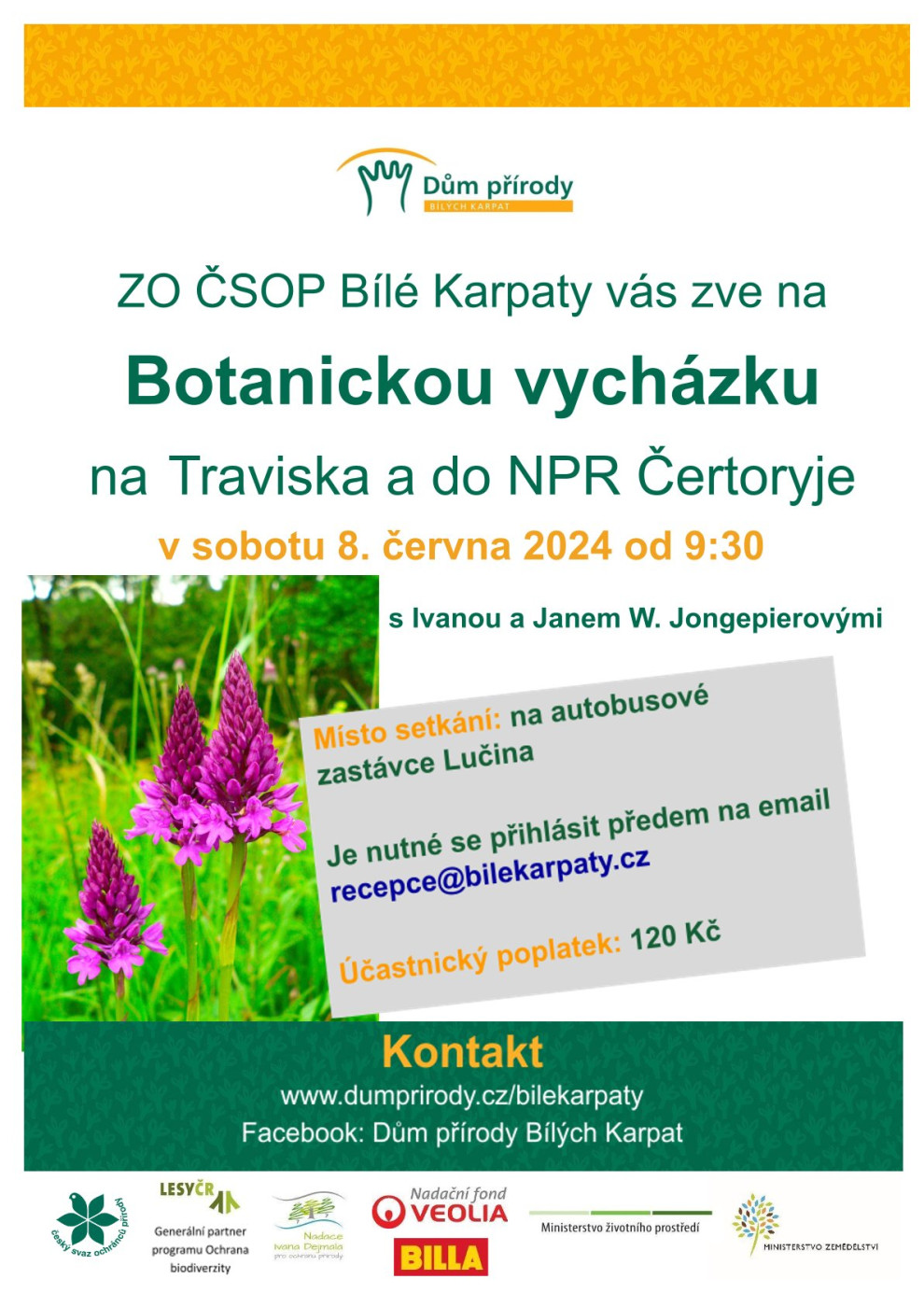 Zveme vás na komentovanou Vycházku za orchidejemi s manželi Jongepierovými, kteří se s vámi podělí o své znalosti a lásku k jedinečným druhům Bílých Karpat.