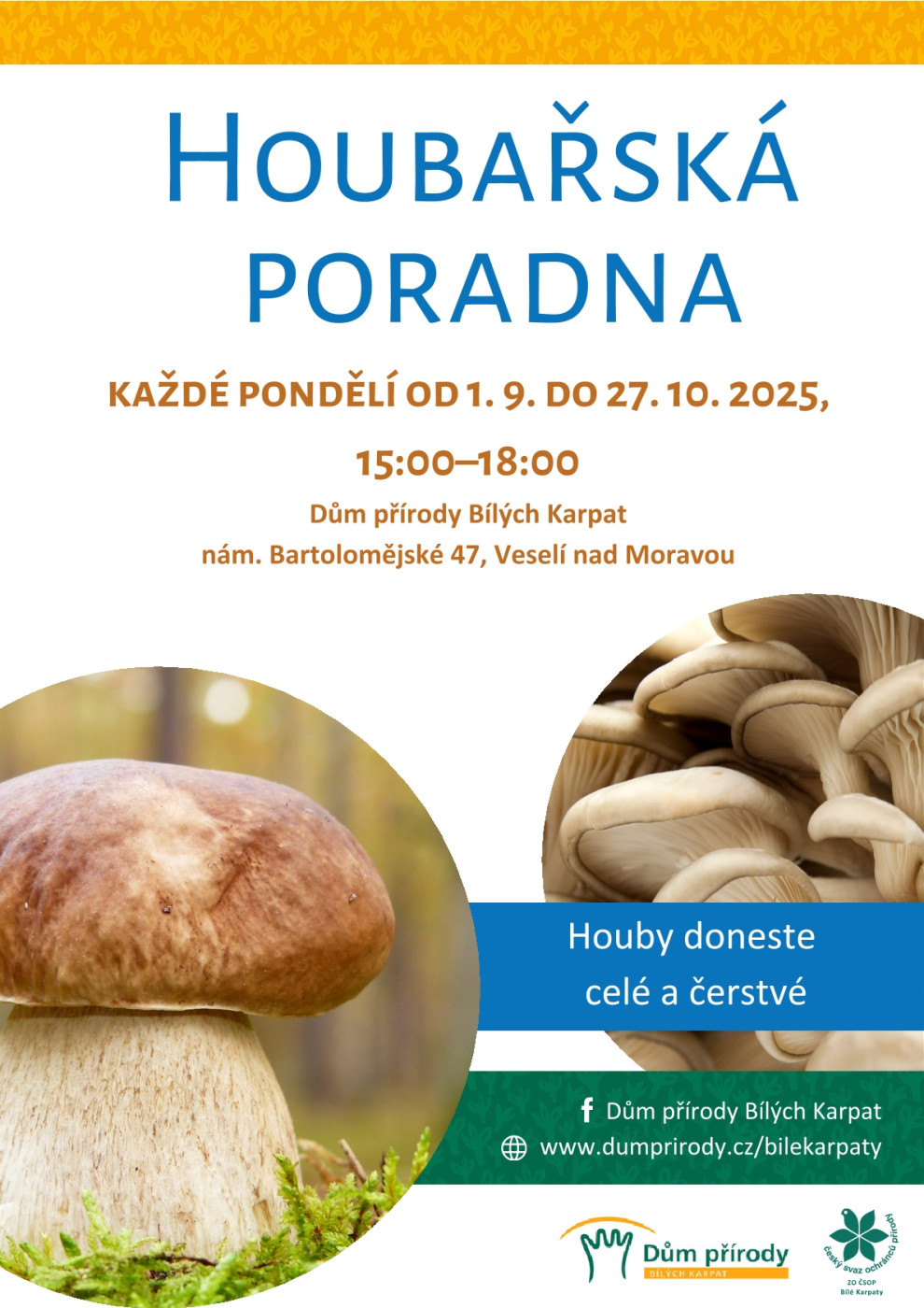 Nálezy hub lze konzultovat přímo na poradně, přes email: houby@bilekarpaty.cz či na Facebooku v události: Houbařská poradna.